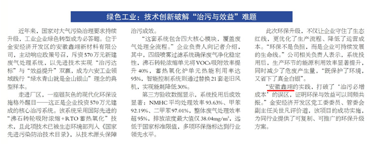 綠色工業:安徽鑫翊以技術創新破解“治污與效益”難題